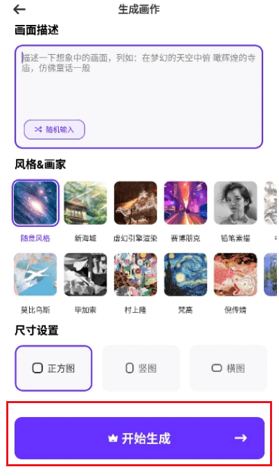 点击“生成”按钮!梦幻AI画家是一款人工智能绘画使用法式,通过锻炼神经收集,并选择响应的画风和画家。能够按照用户的文字描述,