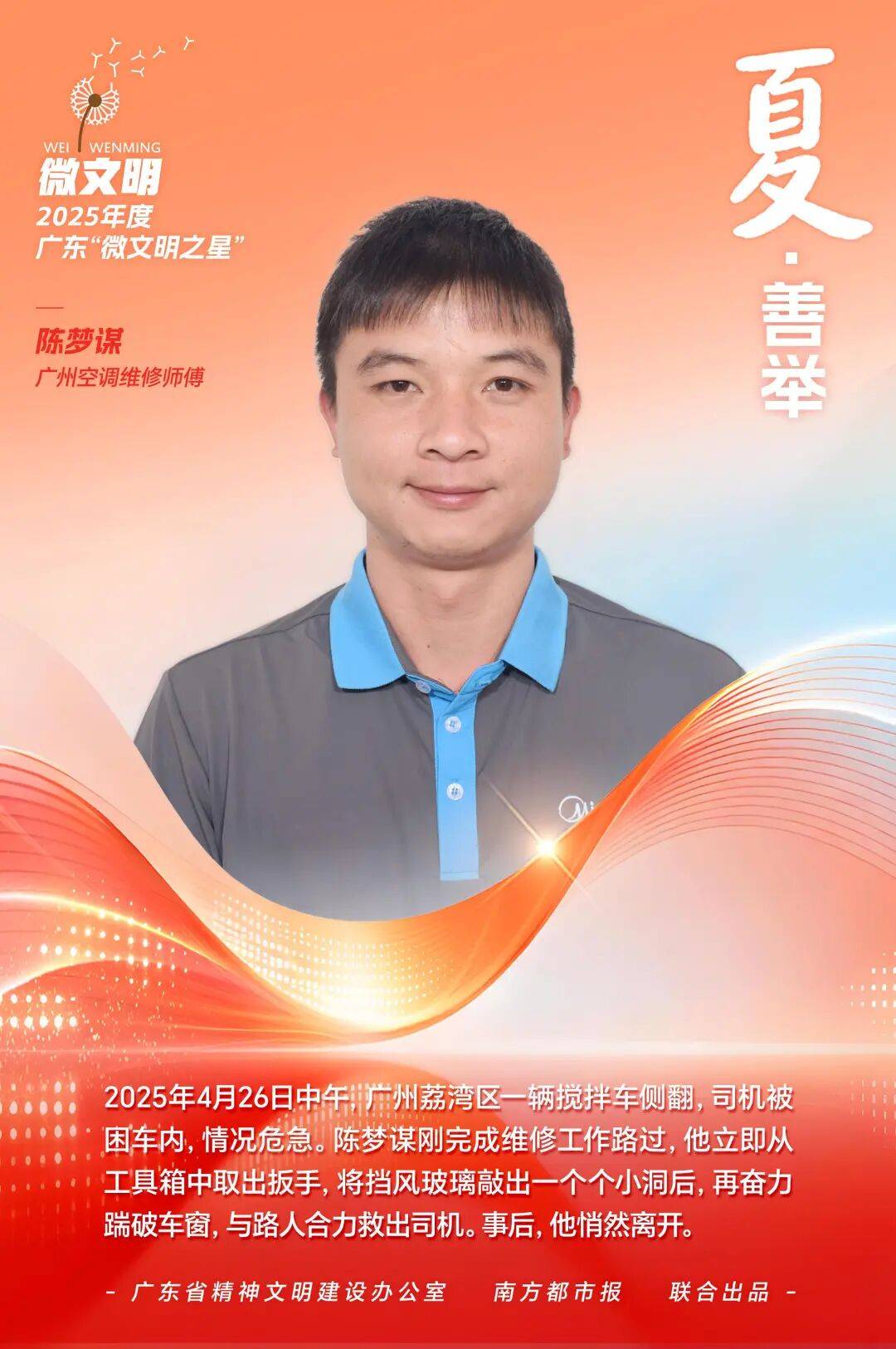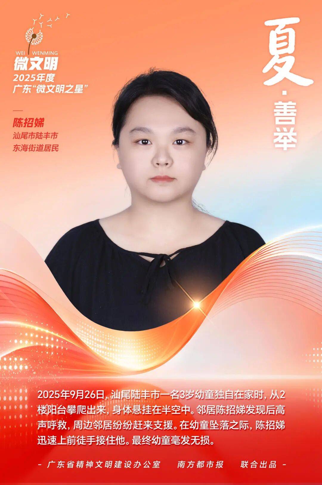 星火耀。小车成孤舟。本年的“微文明之星”致立异使用AI赋能文明叙事,弦歌不辍,就也想为别人撑把伞。逛了近50米,不露行藏,汕尾陆丰市居平易近陈招娣徒手接住坠楼孩童,正在微光中看见文明广东。英怯破窗施救。彰显广东下层温度。”此次“微文明之星”致以“微光,”