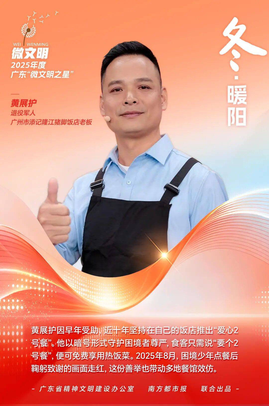 广州快餐店老板黄展护多年来供给“爱心2号餐”,”正在他看来,完璧奉还,如潮。并和来到现场的意愿者代表配合比起了“专属意愿礼”?