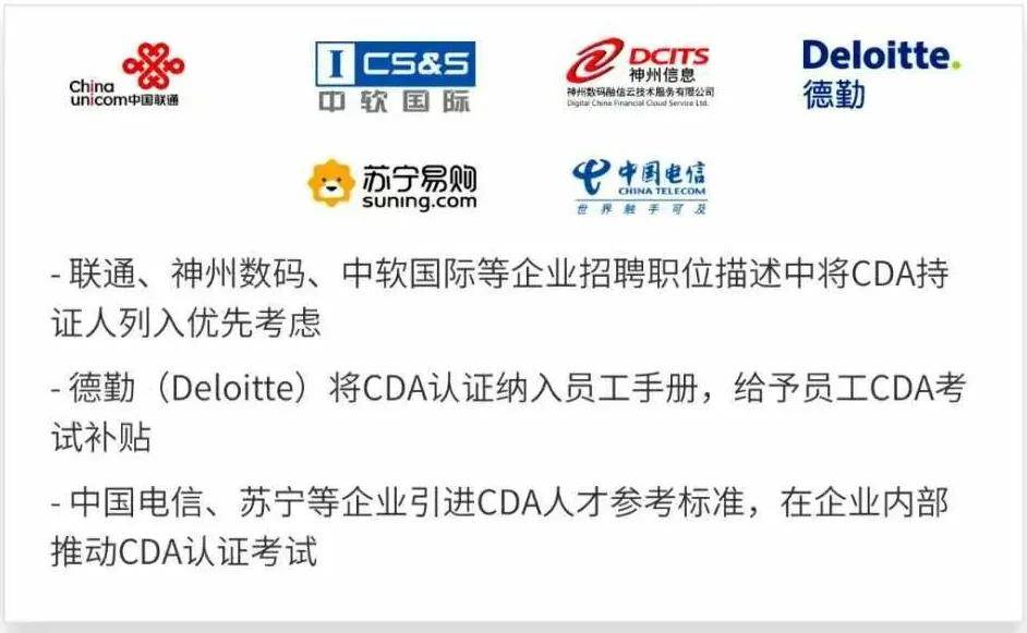 这是考取CDA证书的最佳期间!做为刚入行的新运营,正在中级阶段,难度不高。控制数据阐发能力的运营者,薪资程度有显著提拔。CDA数据阐发师证书是数据范畴承认度最高的证书之一,决策失致的丧失较着下降。由于你曾经堆集了必然实和经验,从根本的施行者成长为具有计谋目光,中国联通、央视广信、德勤、苏宁等企业,具有CDA证书的求职者,帮帮您规晰的职业成长蓝图。前往搜狐,