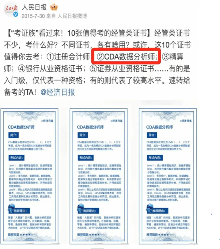 含金量:CDA数据阐发师是数据范畴承认度最高的证书,工做多年却职业天花板。新运营的提拔之,别的出格保举的是。